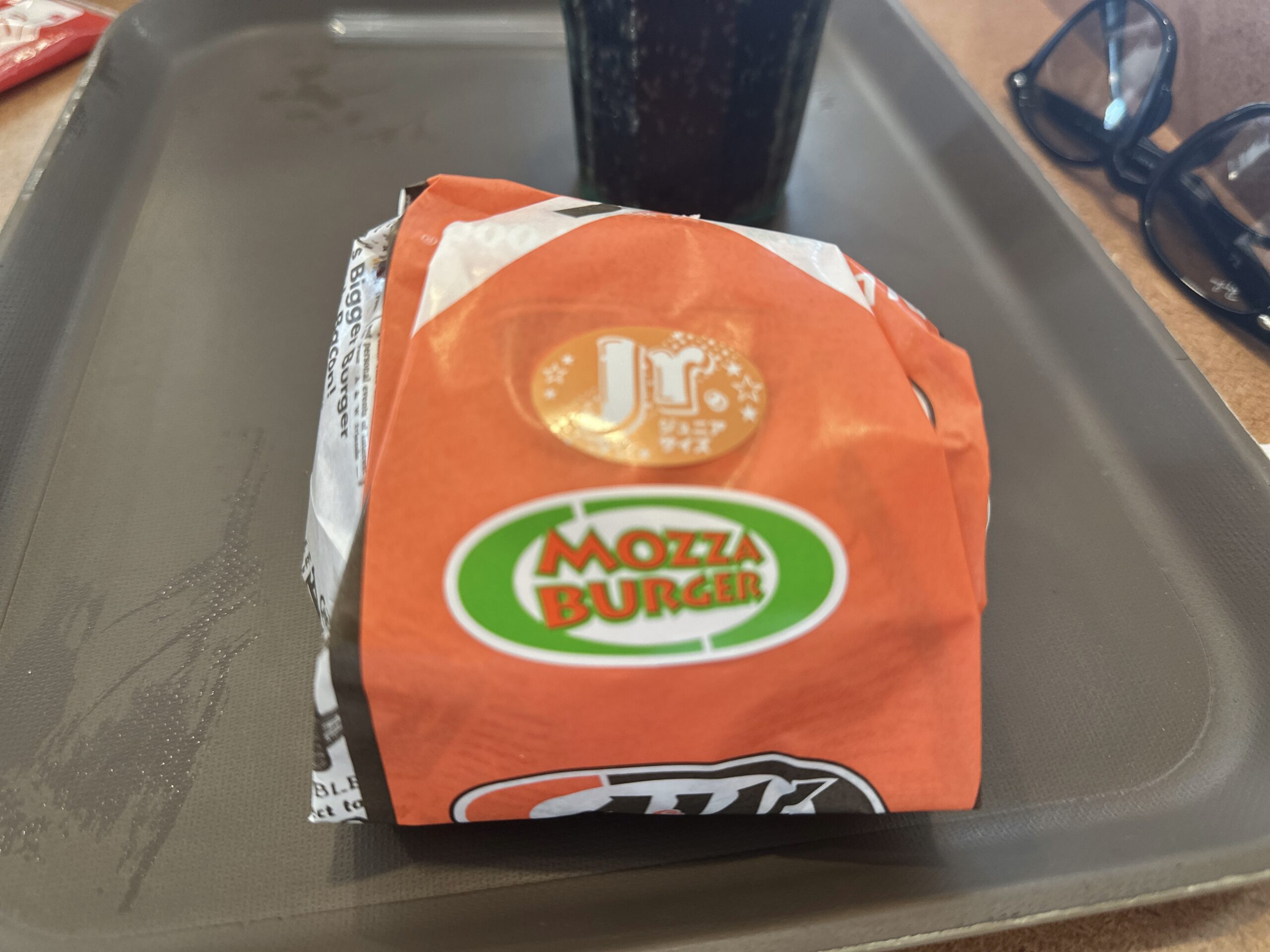 朝ごはんを食べようと来店したのでボリュームのあるメニューはさけ、ジュニア モッツアバーガーにスーパーフライコンボ(ポテトと飲み物のセット)をつけて頂く事にしました!