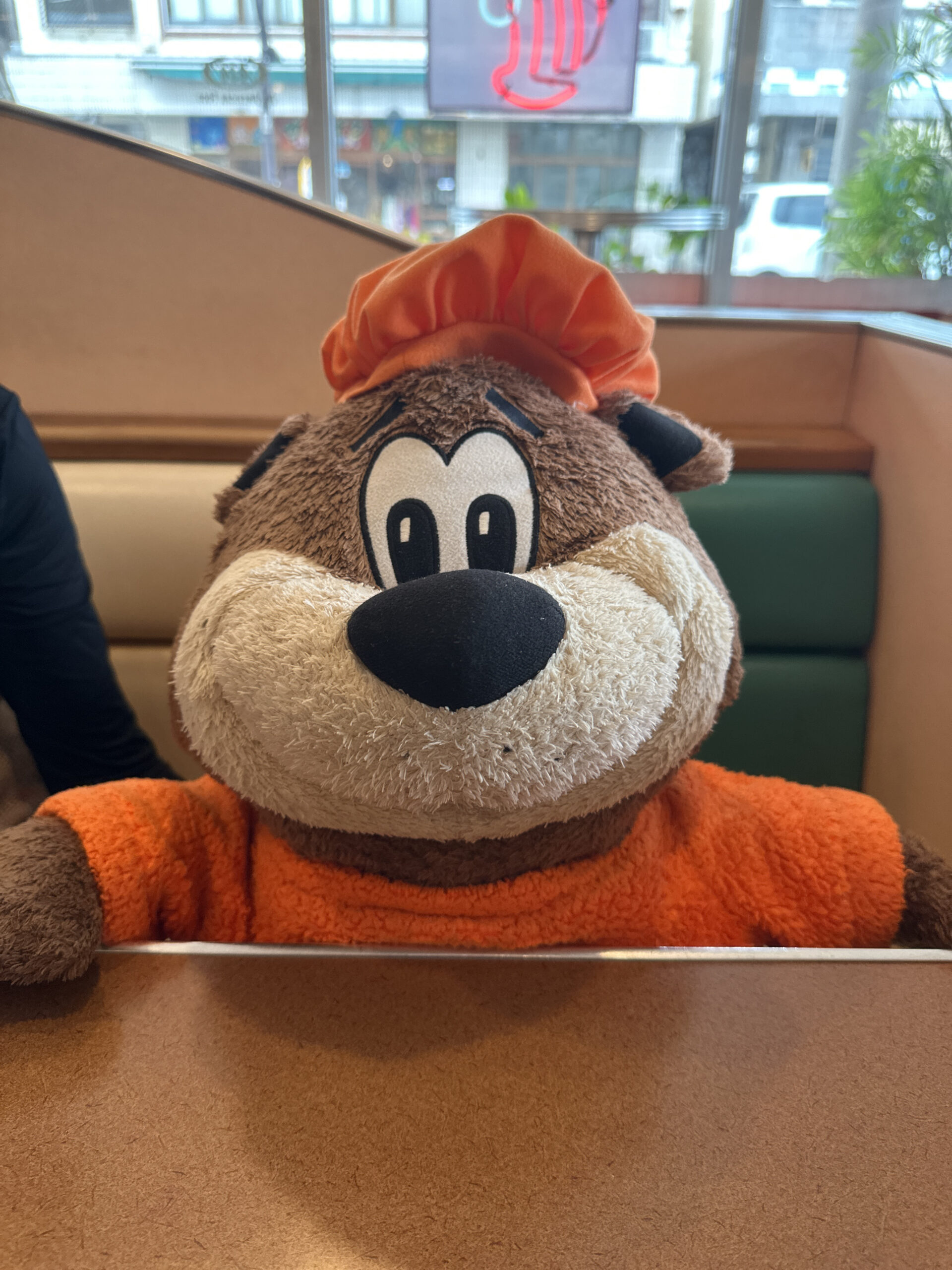 マスコットのクマがとってもかわいいんです。(結構ファンが多いのか、店内でクマさんのグッズがたくさん販売されていました。)
