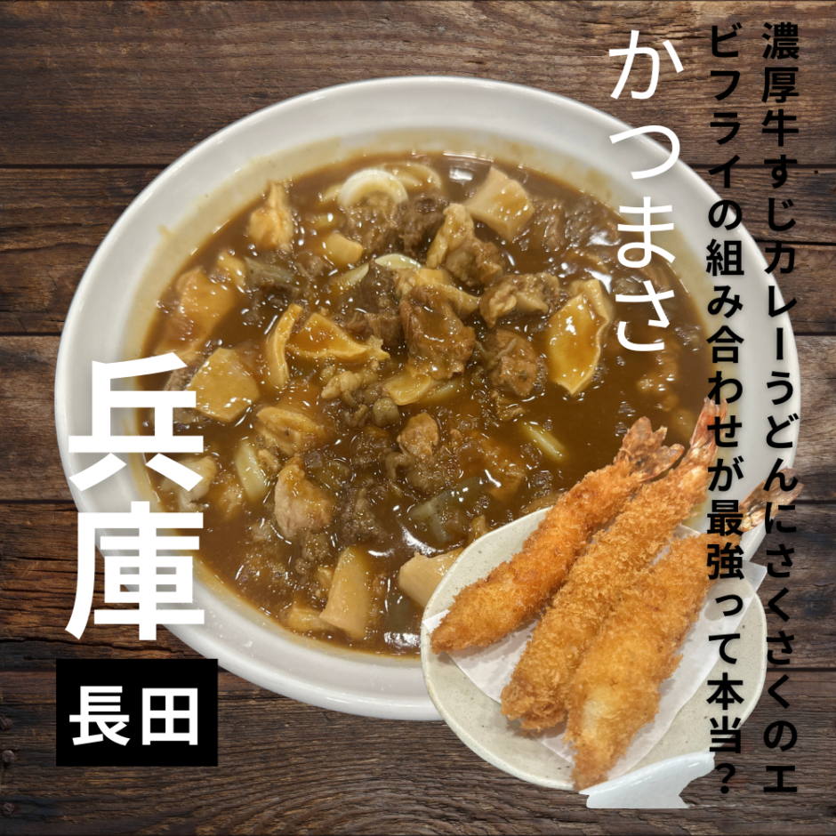 かつまさのとろみのある出汁が効いたカレーうどんと海老フライが相性抜群で美味しいんです!