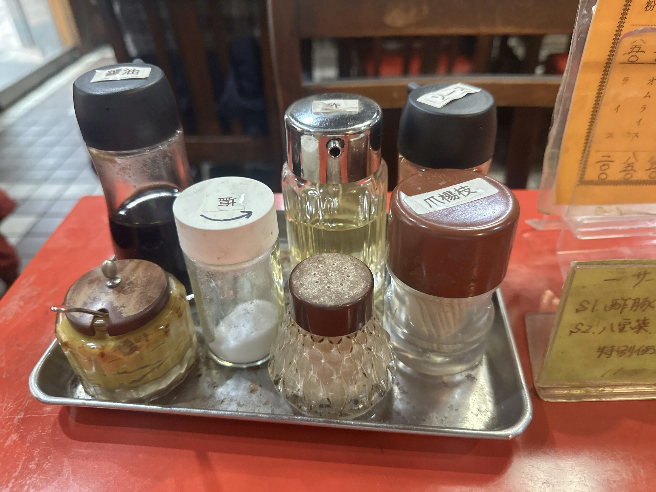カウンターテーブルへ案内されると調味料がずらり