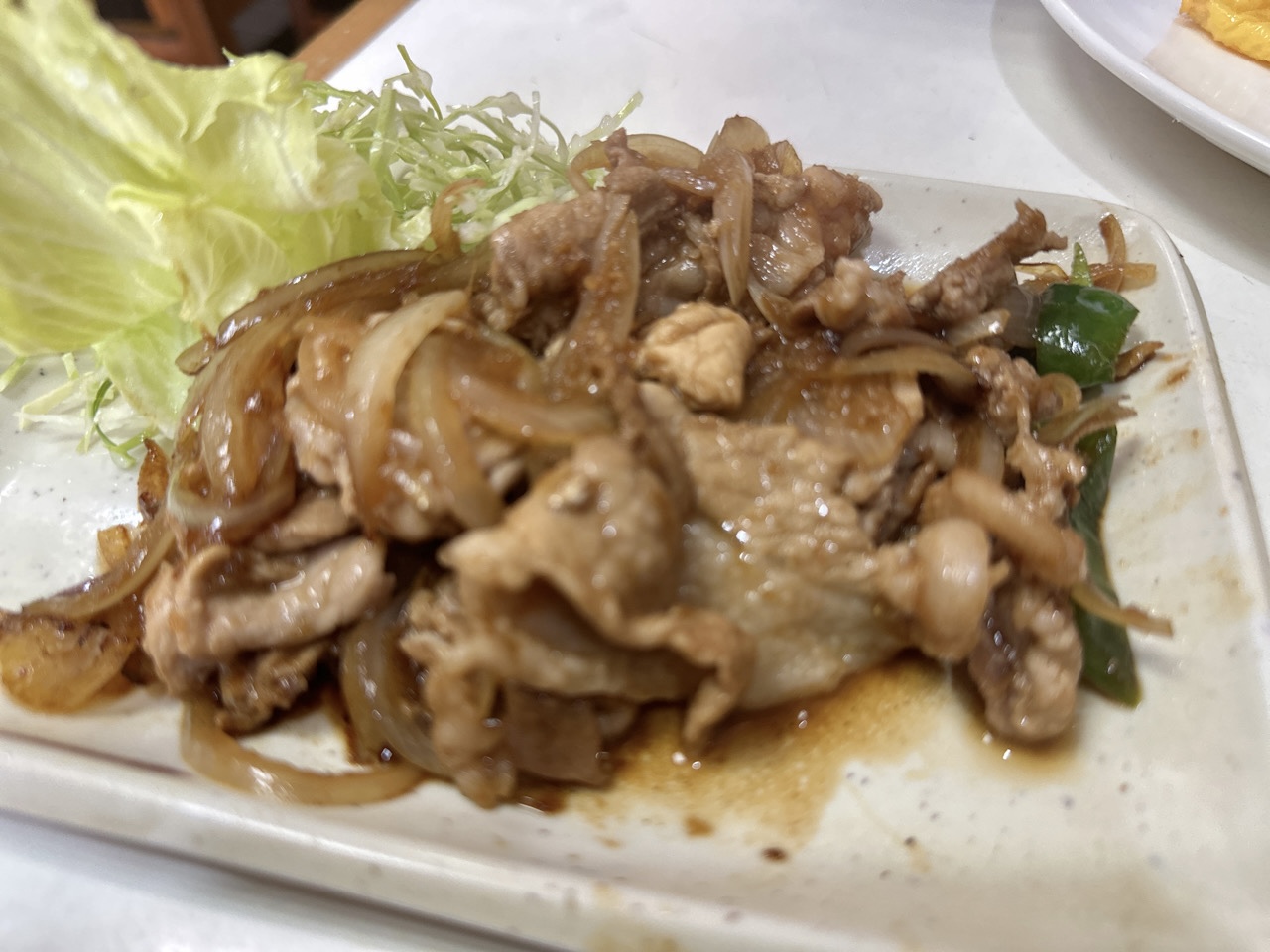 出来立てで熱々。そして癖のない定番の生姜焼きです。