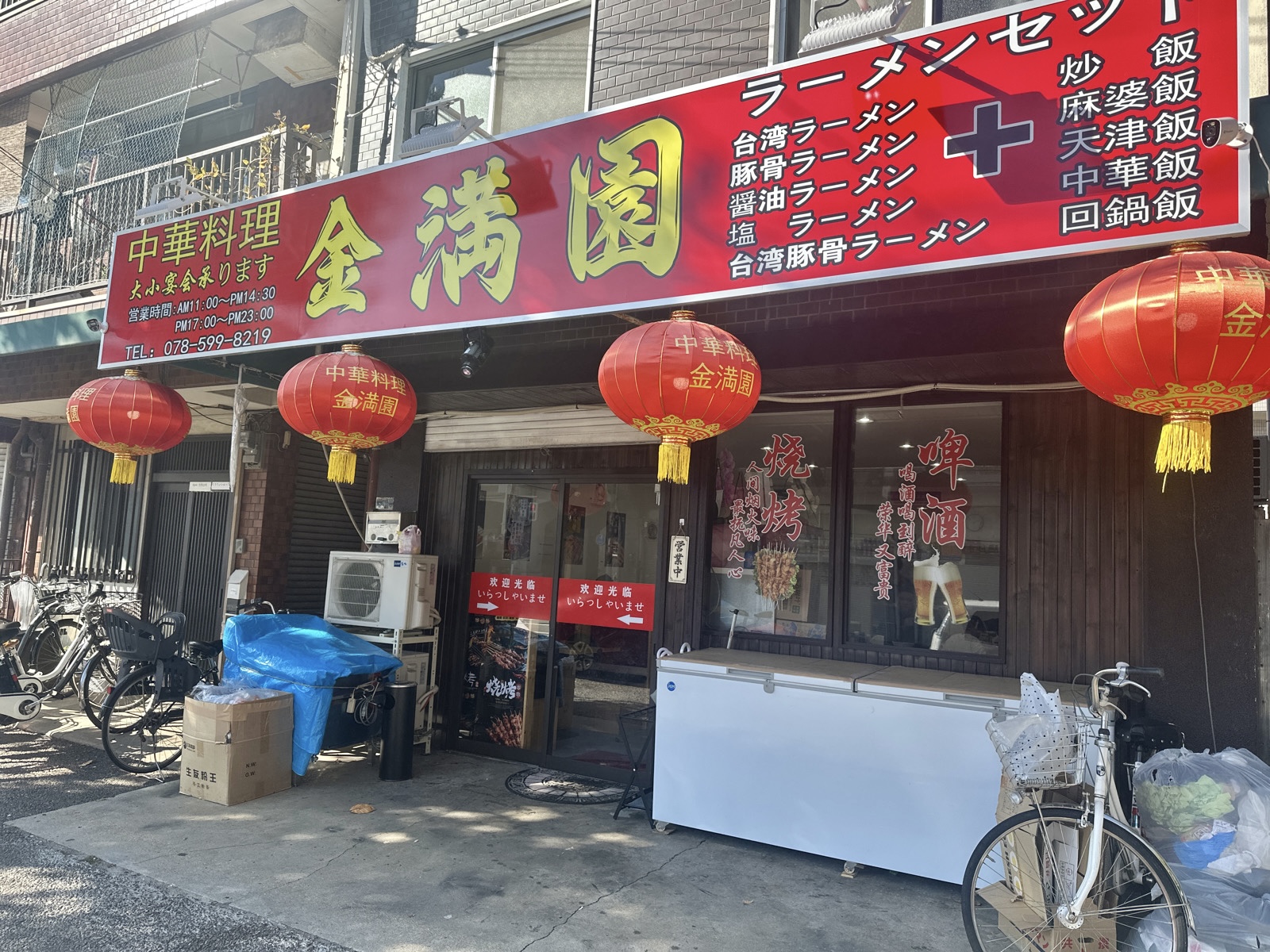 JR兵庫駅の北側、線路沿いを西に向かうと金満園があります。