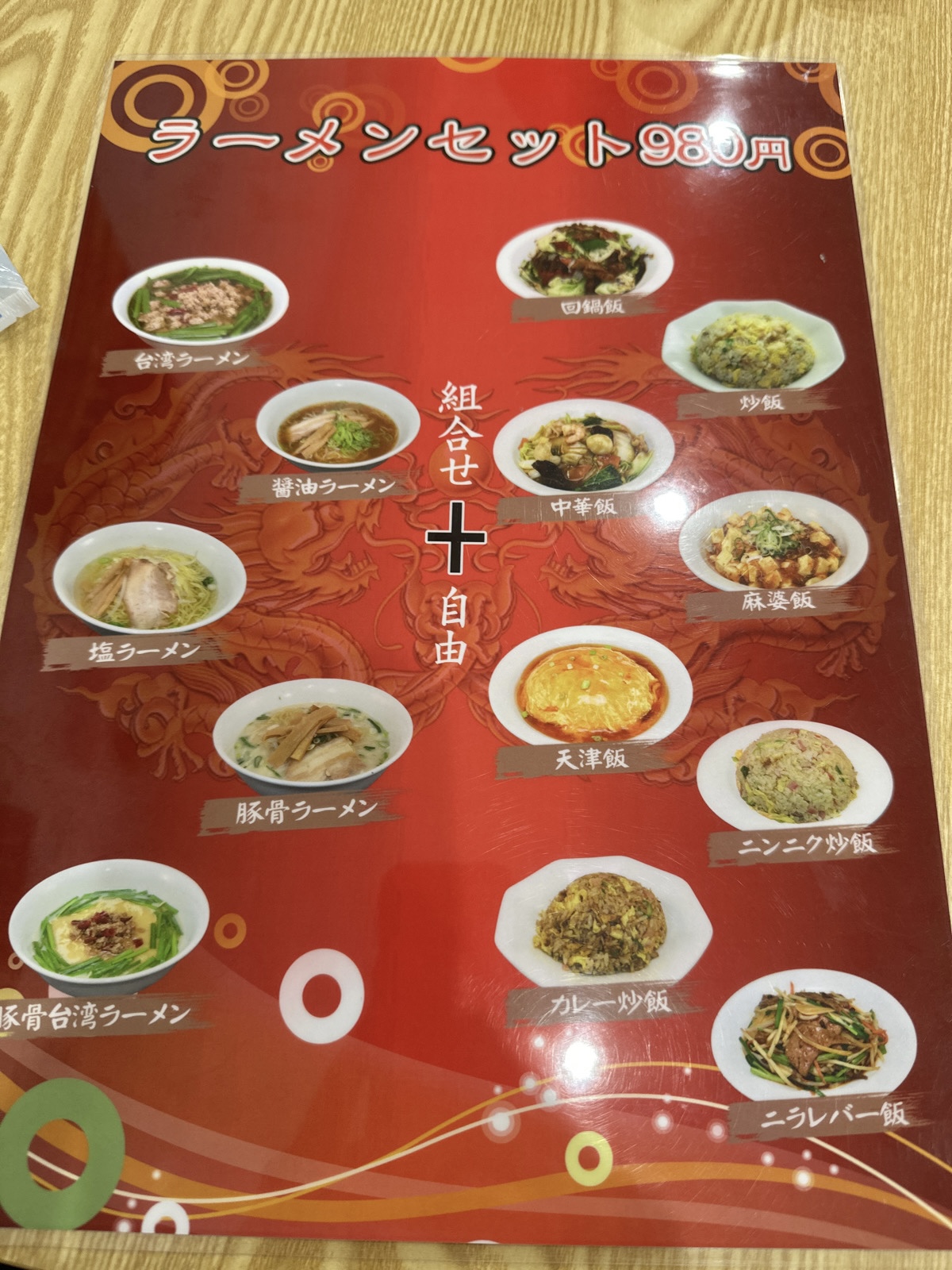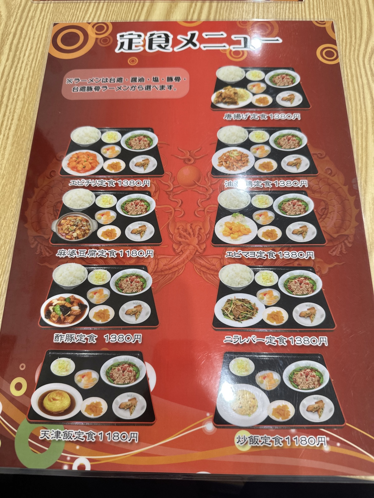 ・定食メニュー ※ラーメンは台湾・醤油・塩・豚骨・台湾豚骨ラーメンから選べます