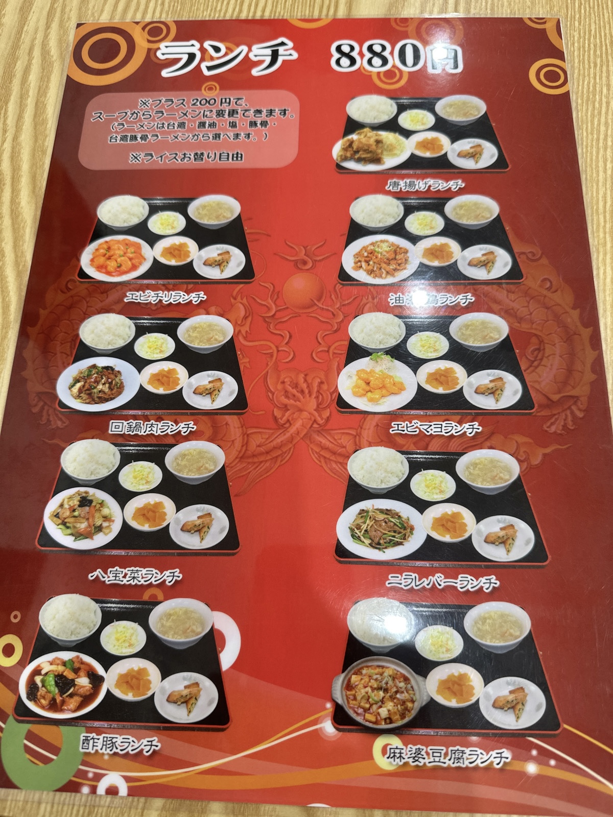 唐揚げランチ・エビチリランチ・油淋鶏ランチ・回鍋肉ランチ・エビマヨランチ・八宝菜ランチ・ニラレバーランチ・酢豚ランチ・麻婆豆腐ランチ