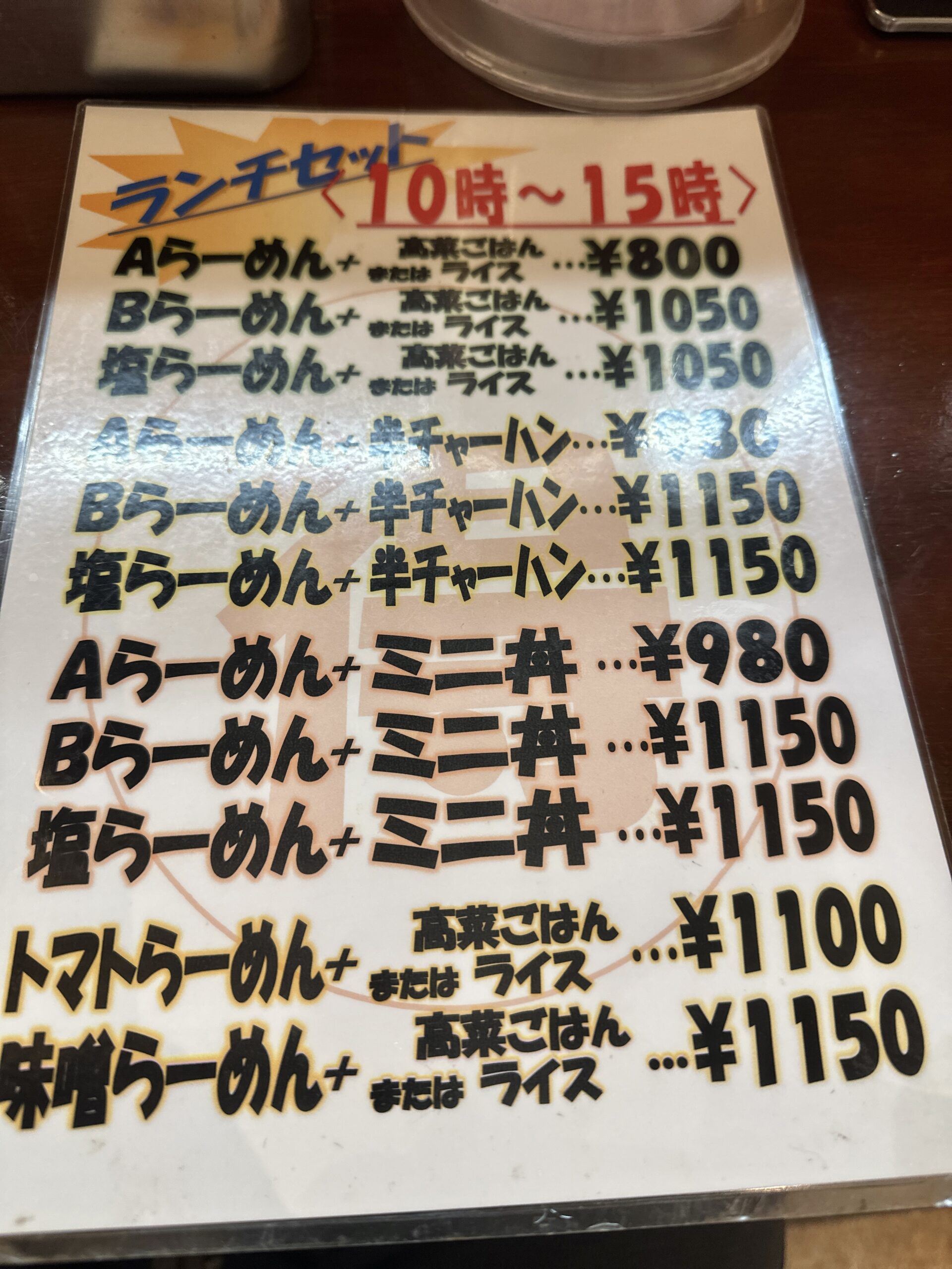 Bラーメン+高菜ご飯 またはライス ¥1050