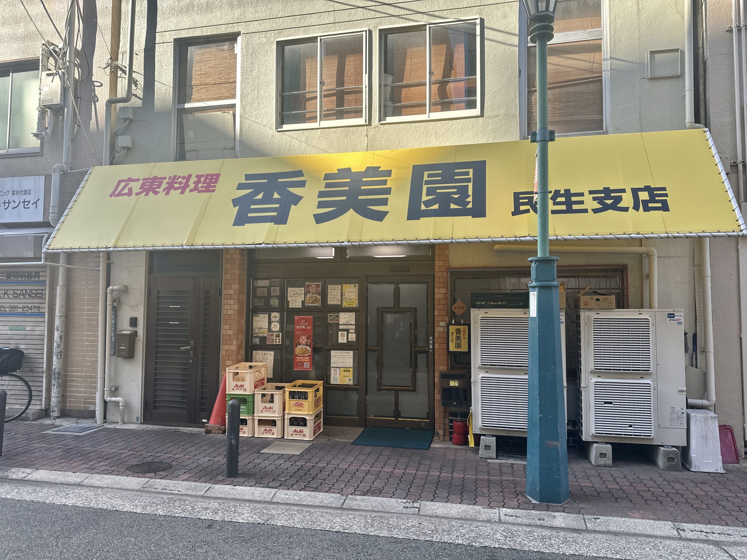 派手な黄色の垂れ幕というか看板というかで大きな文字で広東料理 香美園とでかでかと書かれており、気になって調べました。