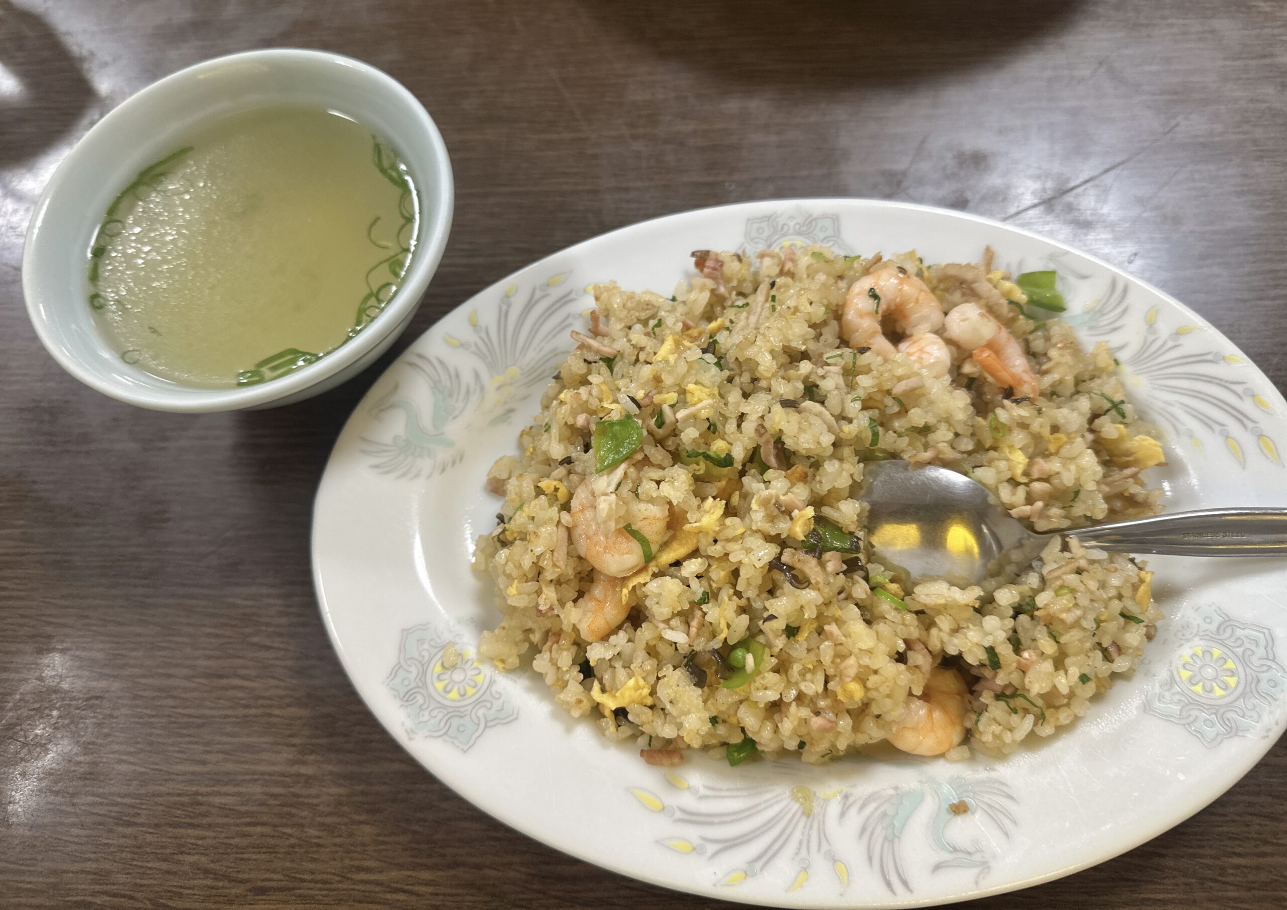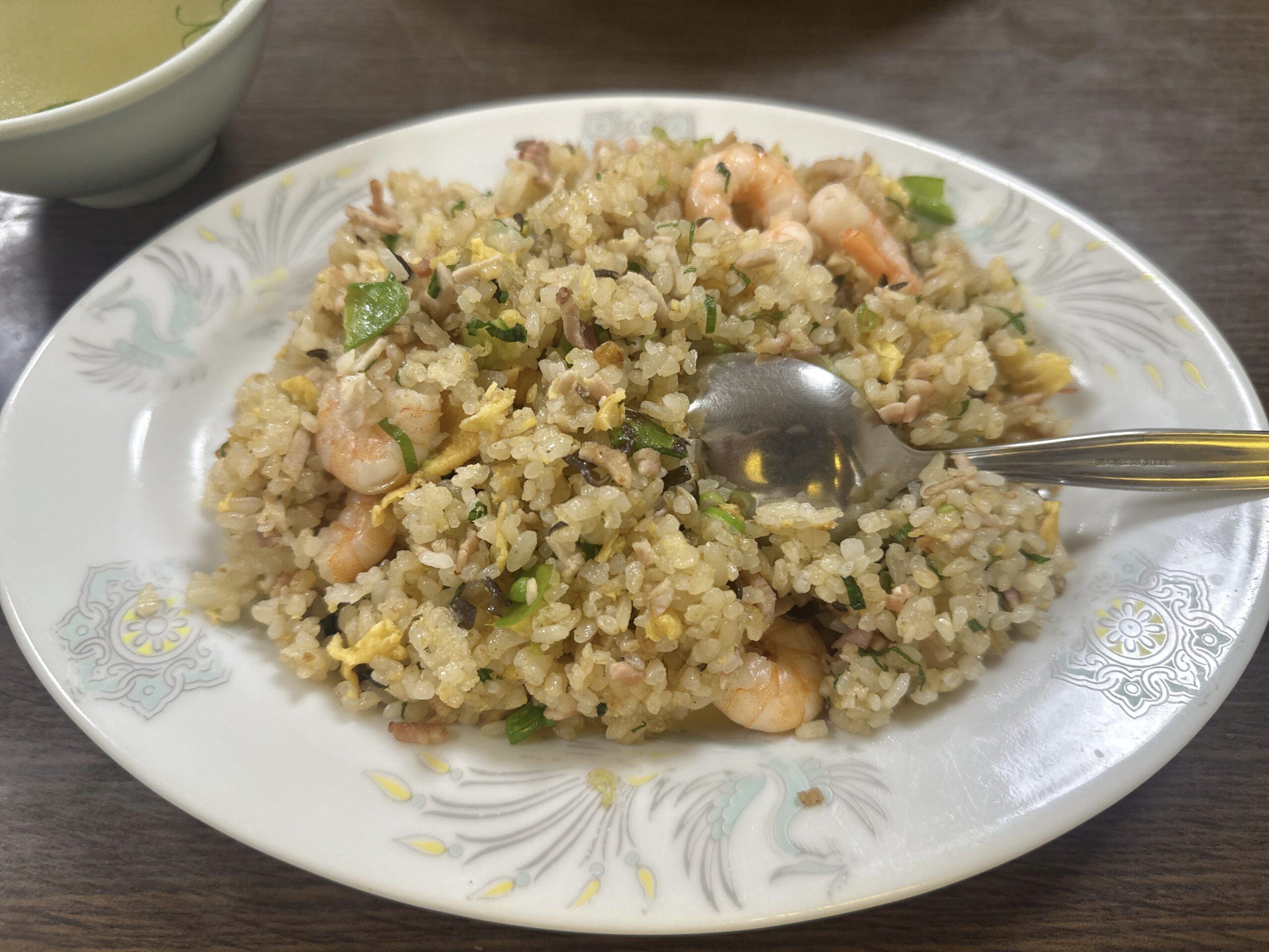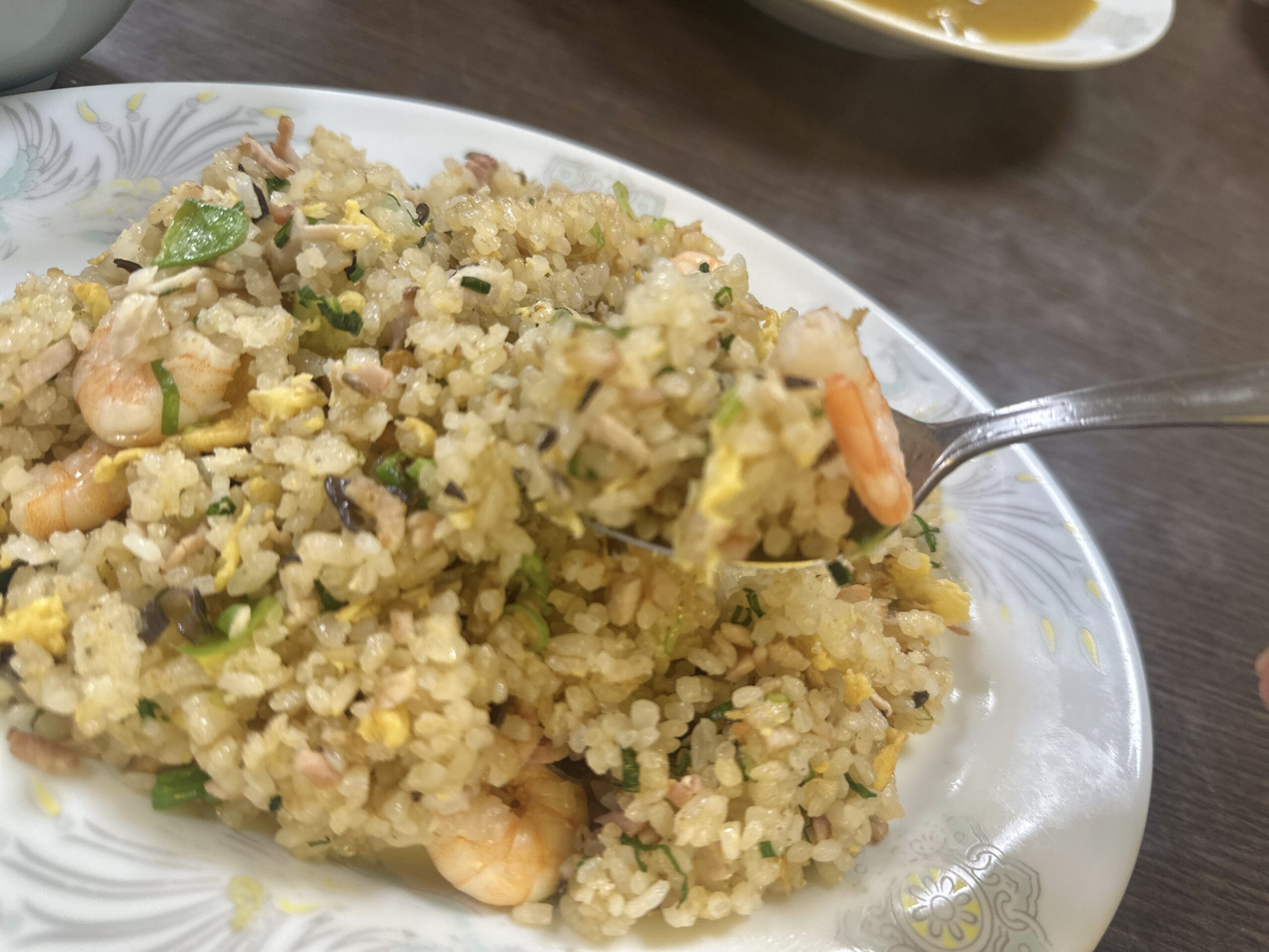 そして五目チャーハンも美味い!エビがたっぷり入ってこちらも濃いめの味付け。食べ出すとどんどん食べてしまう感じでした。