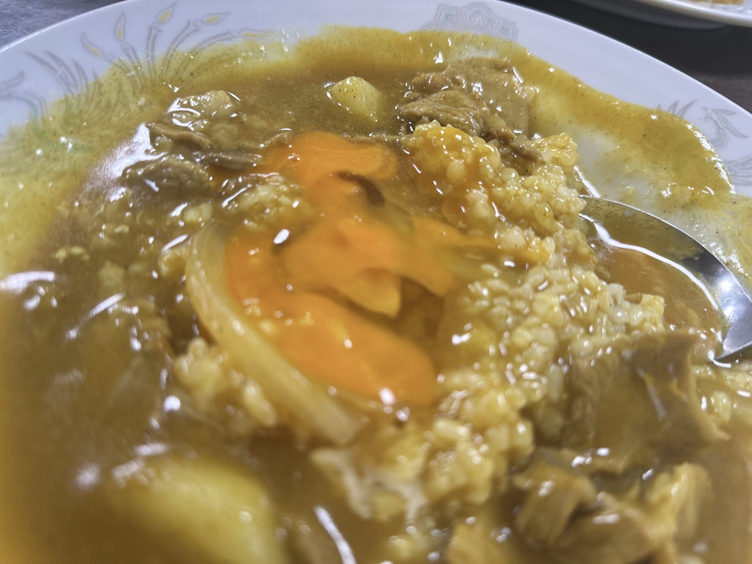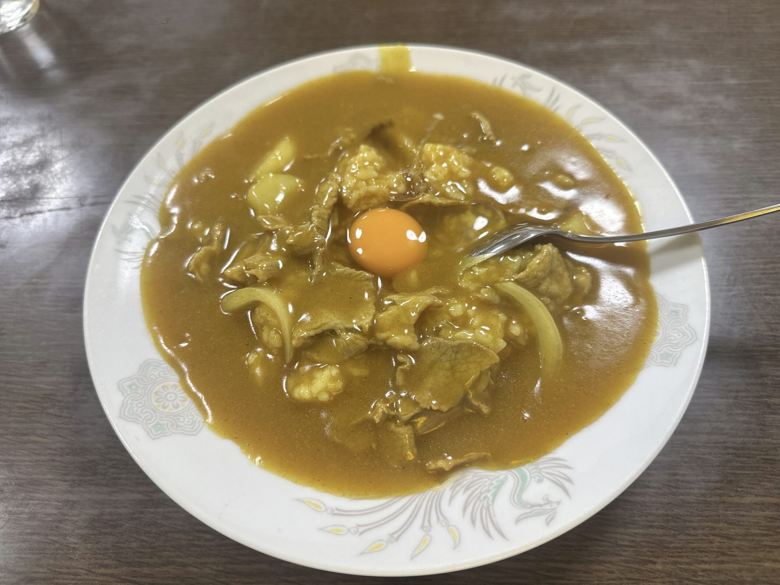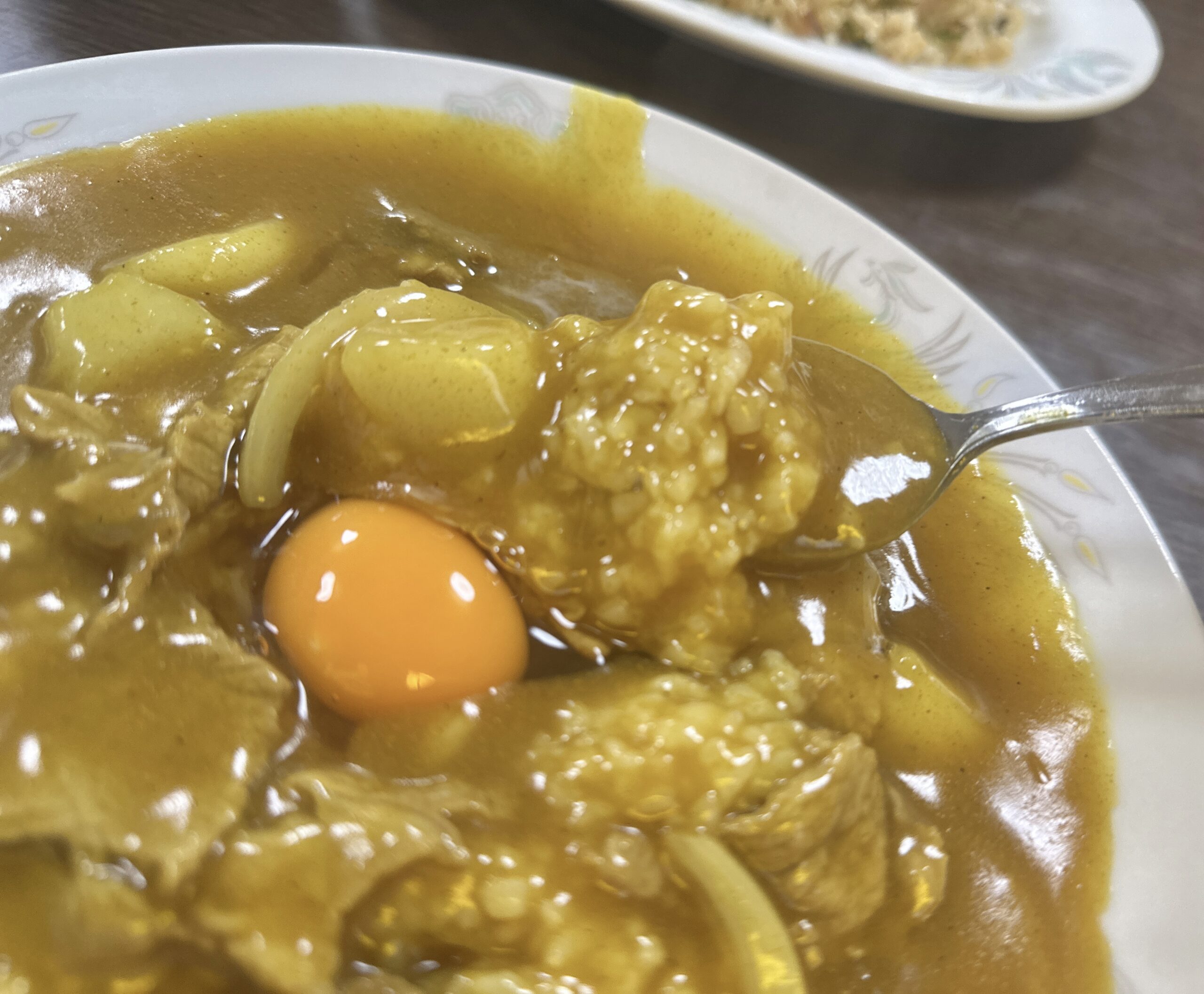出汁の効いた中華カレーと生卵の相性が抜群!絶品です!