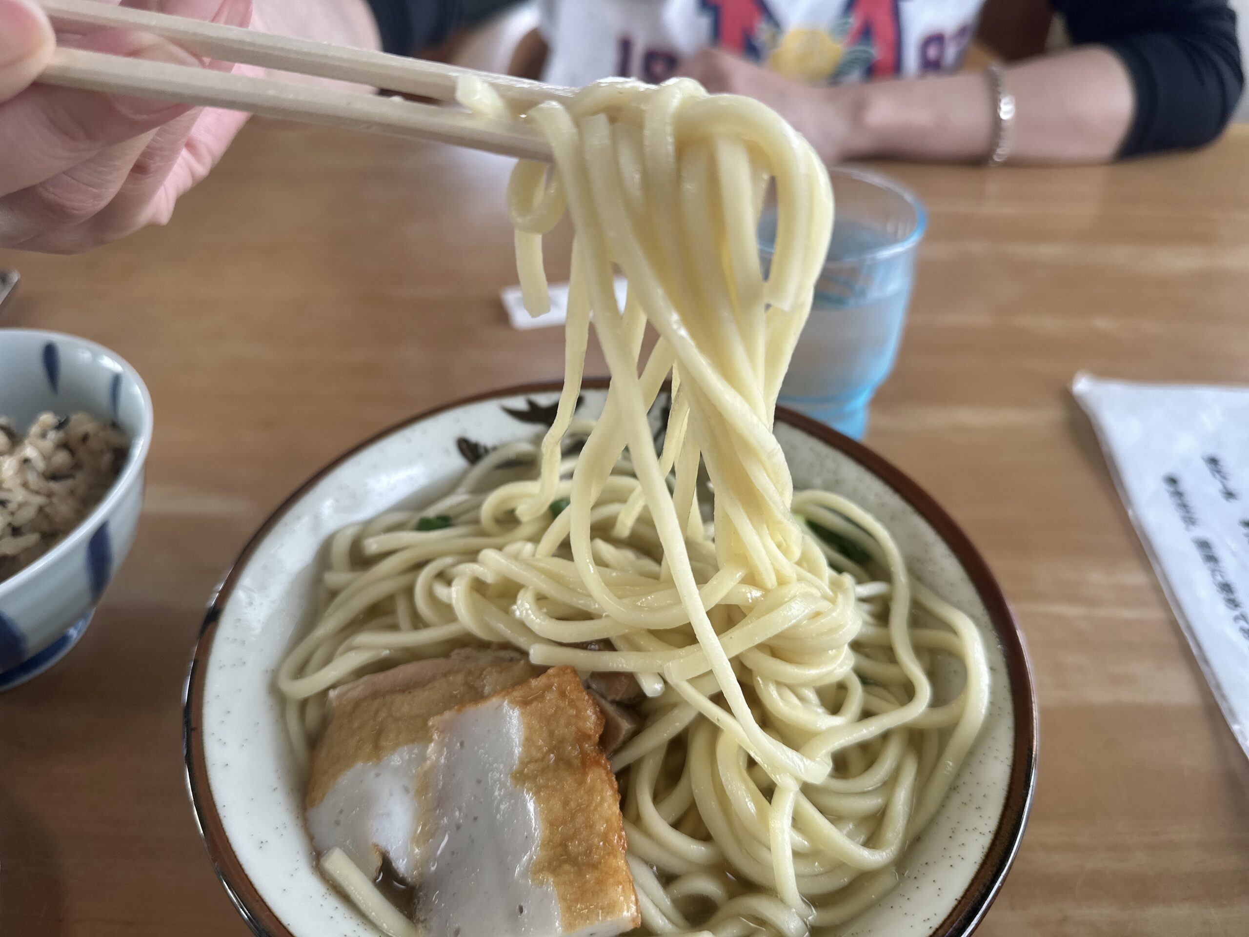 中太麺がこのスープによく合います。うどんともそばとも違う独特の麺です。