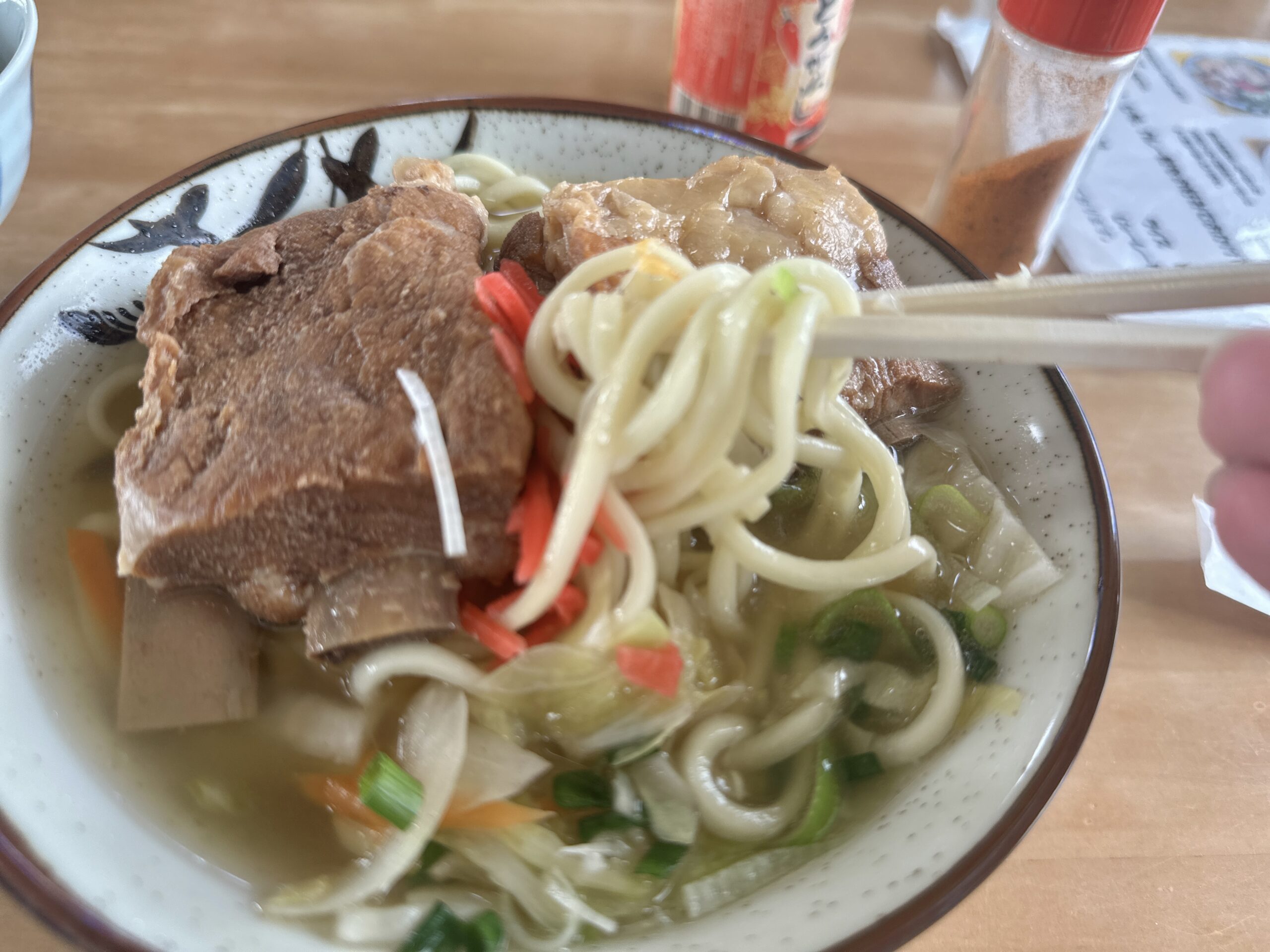ソーキを余すことなく食べながら麺もジューシー頂いてあっという間に完食です!