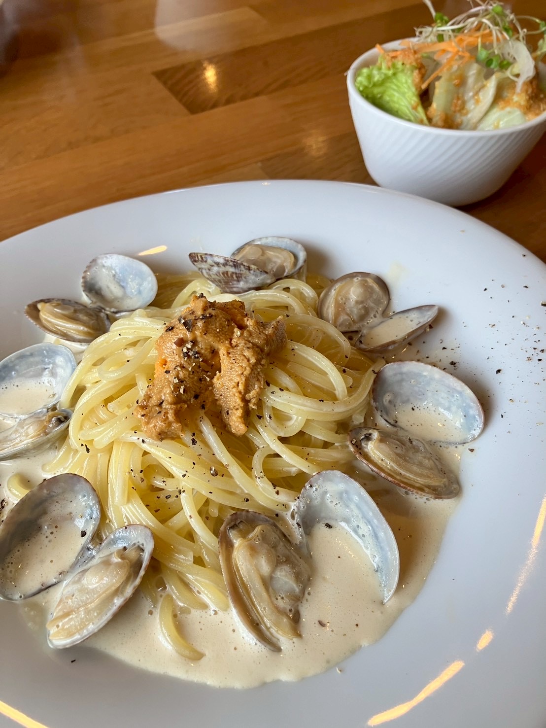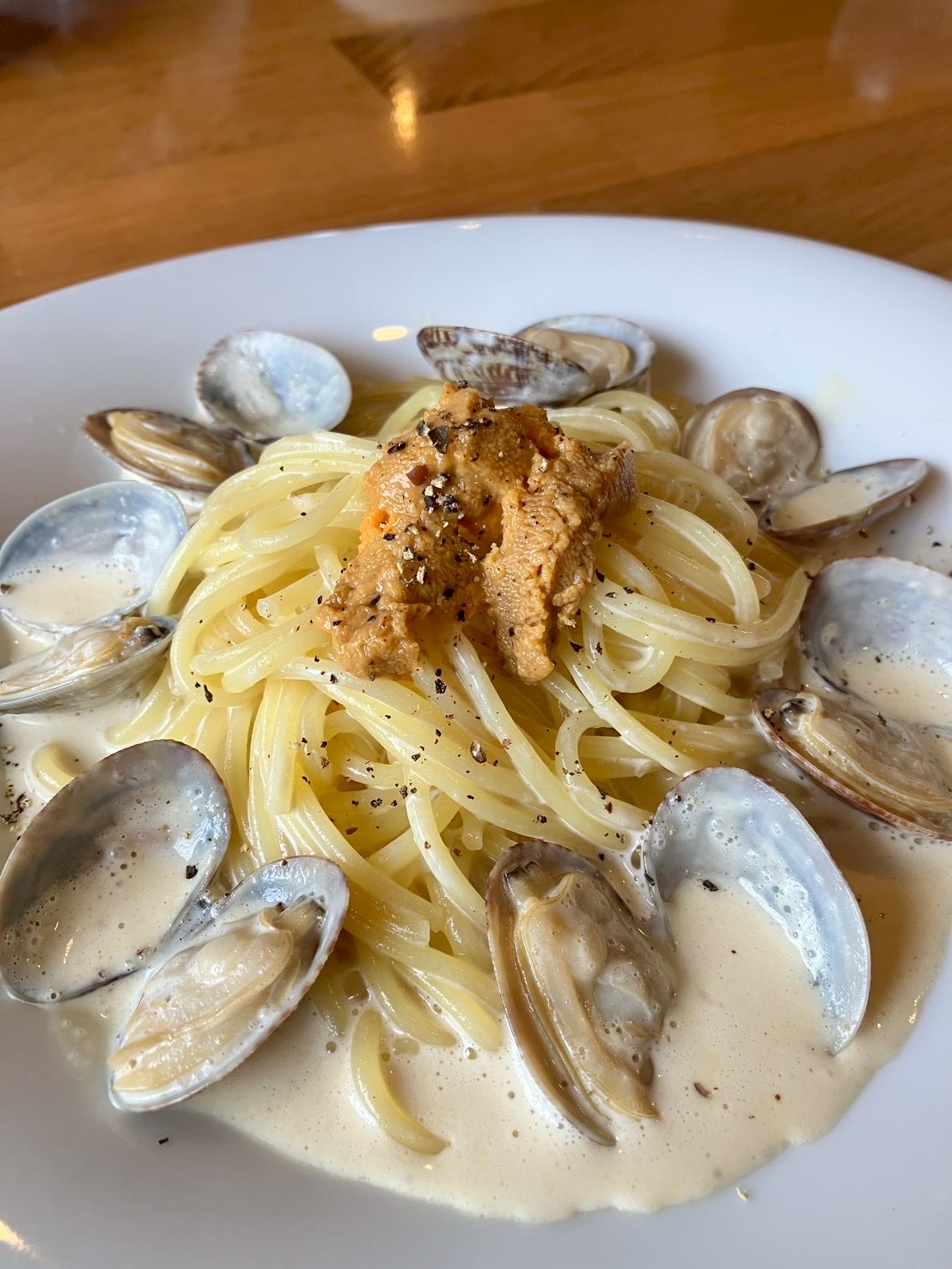 ウニとアサリのクリームソース スパゲティー(細麺) ¥1400