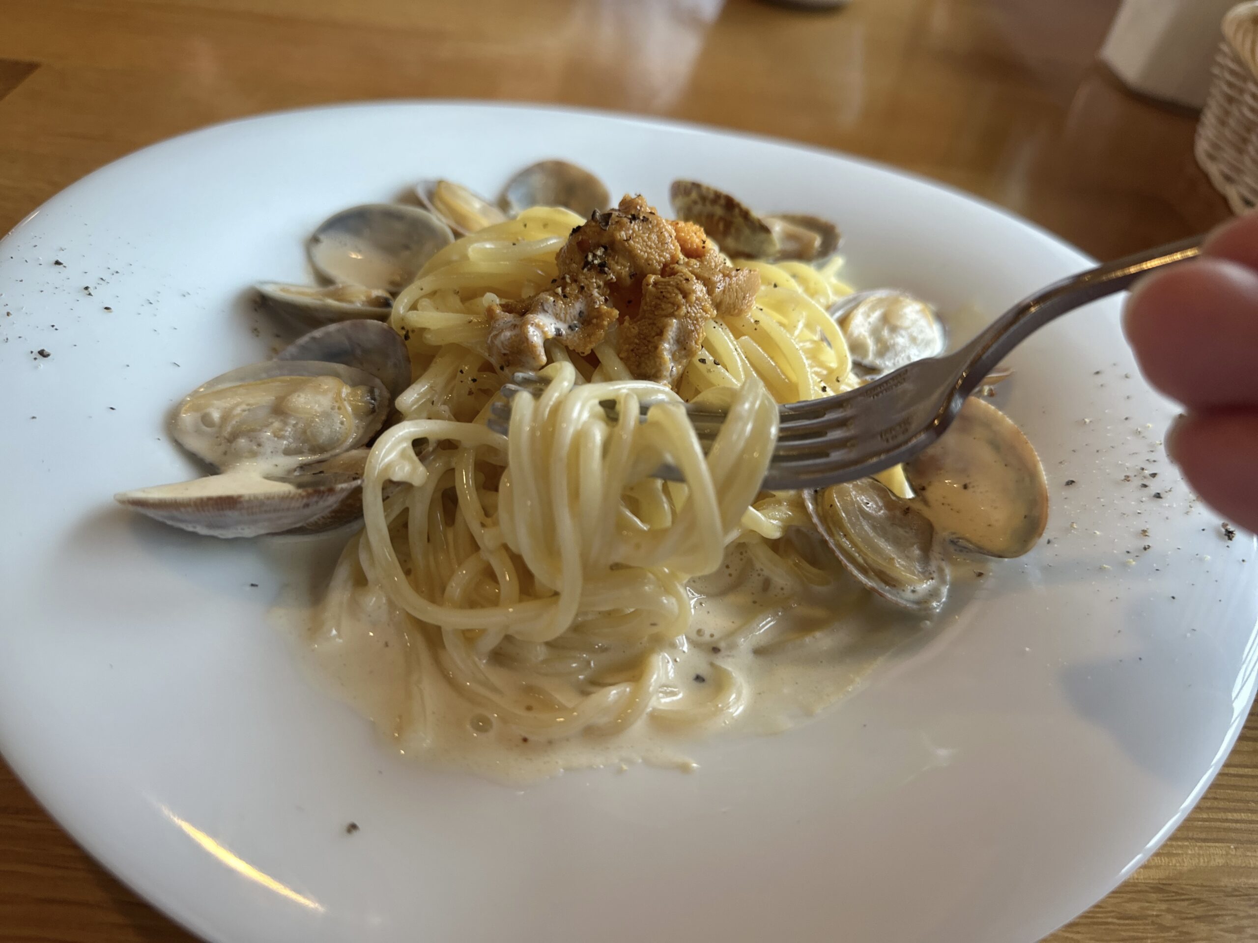 ウニとクリームソースをしっかり絡めて食べると・・・もう幸せ~ってなりました。