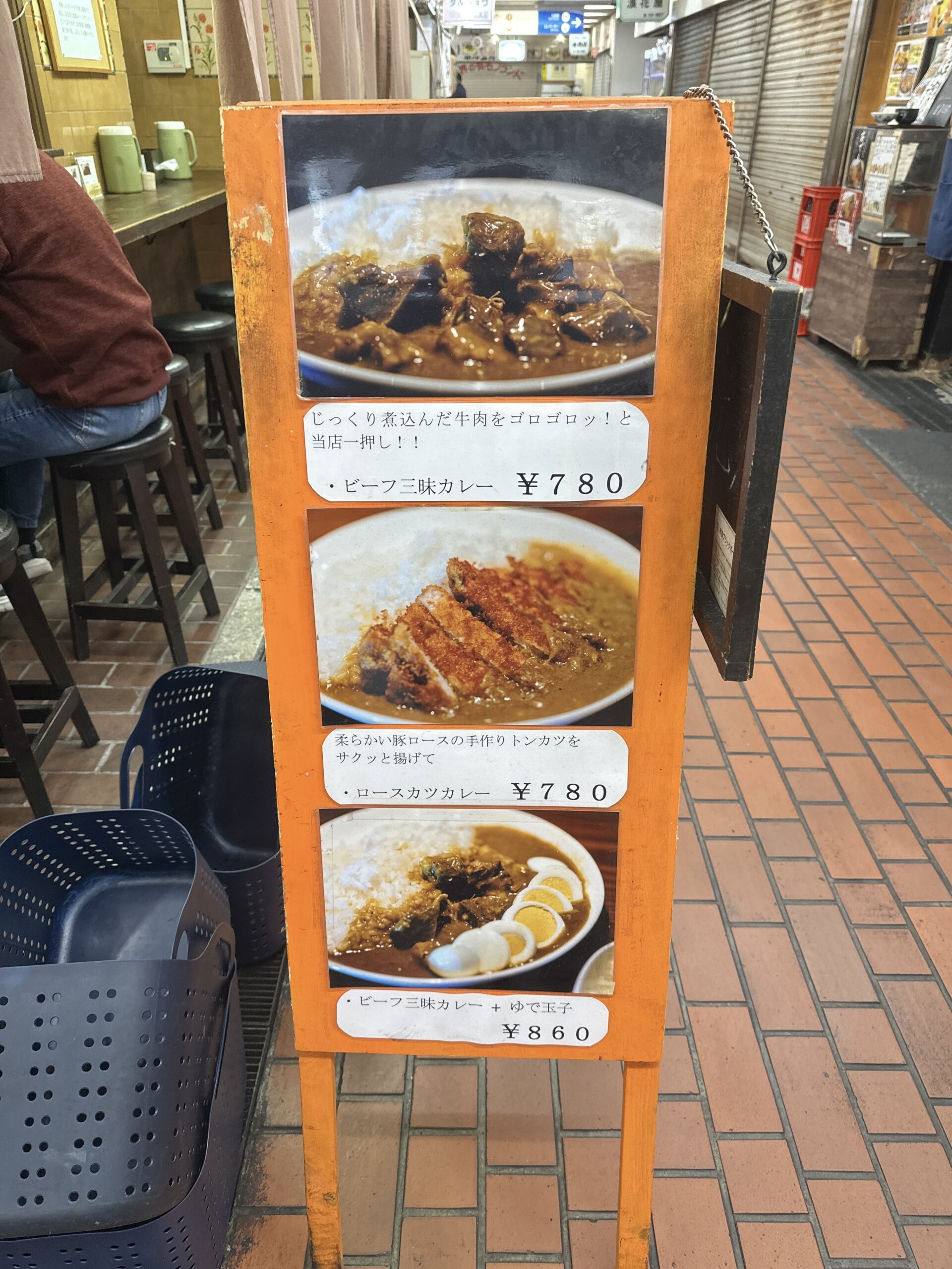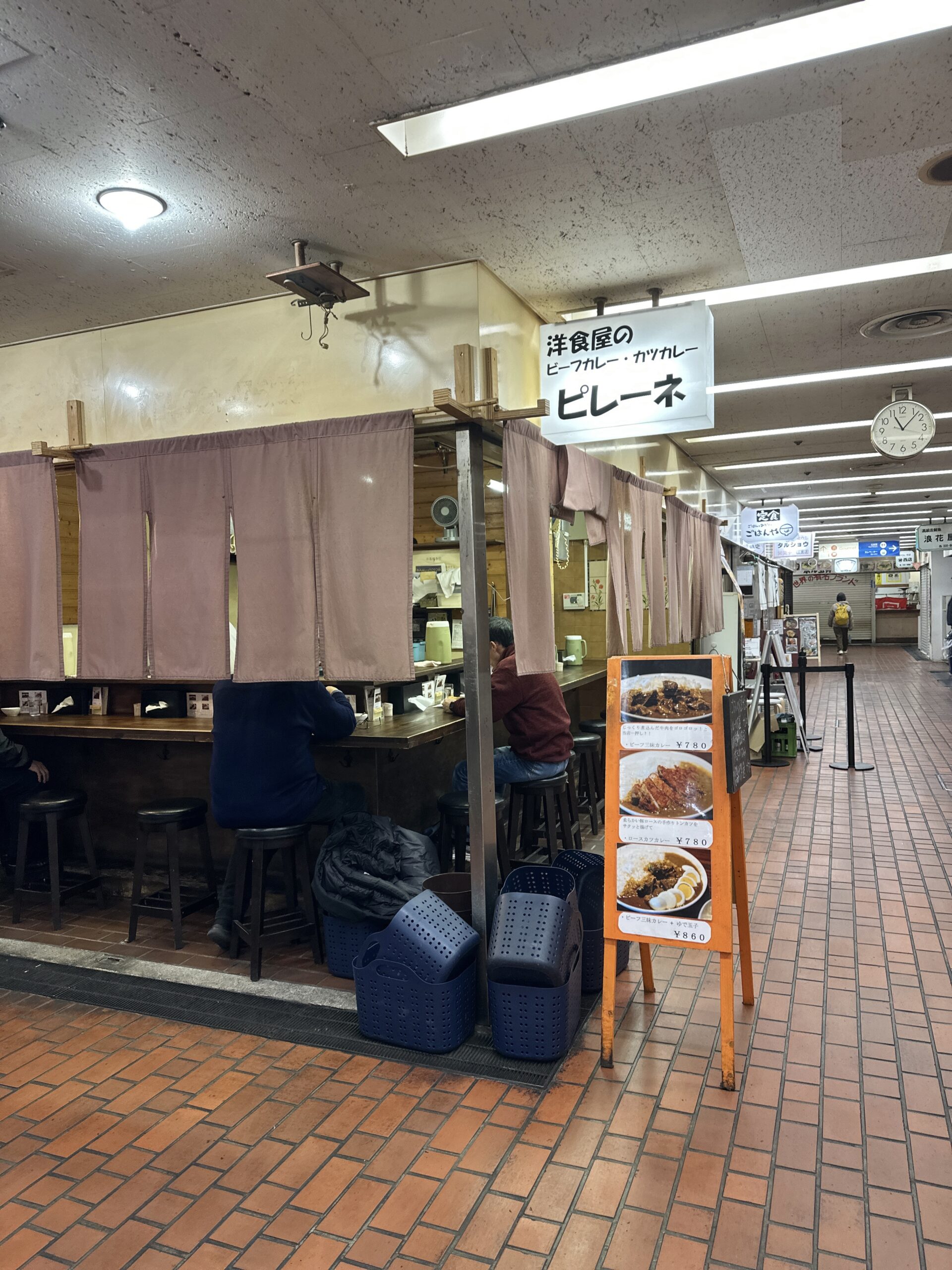 神戸・三ノ宮のセンタープラザにある洋食屋のビーフカレーと書かれた看板があるお店”ピレーネ”。