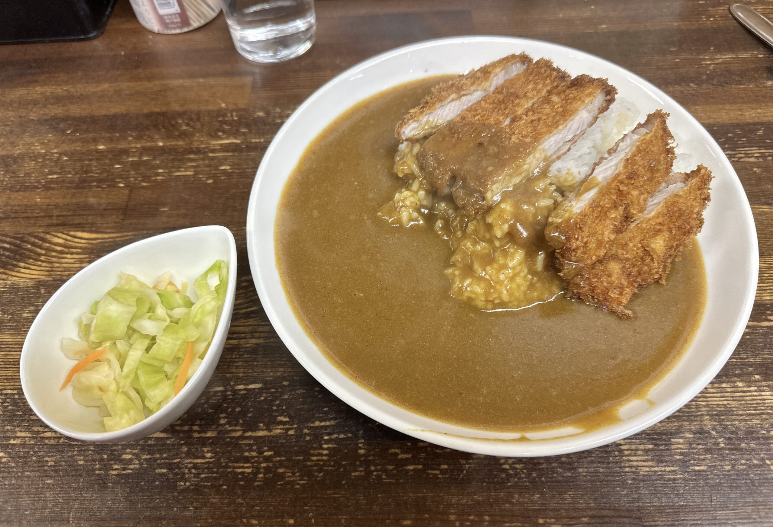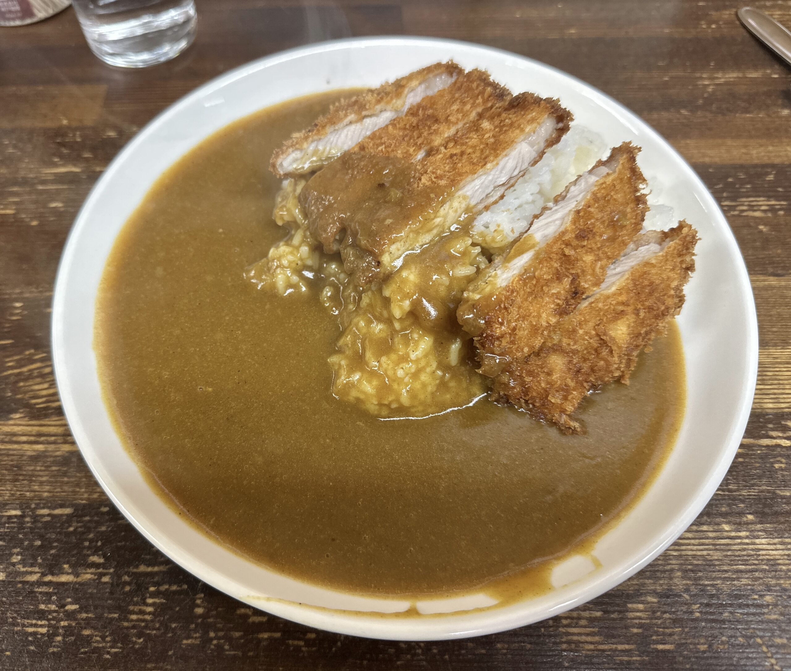 ロースカツカレーも大きなロースかつがカレーの上にドンっと乗っていて、もちろんルーは溢れんばかりにいっぱい入っていました。