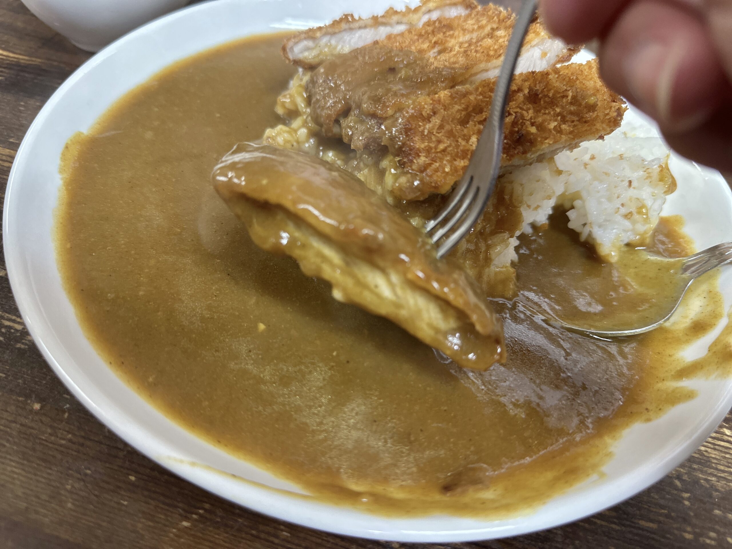 そしてロースかつ。ルーにたっぷり浸らせてから頂きます。