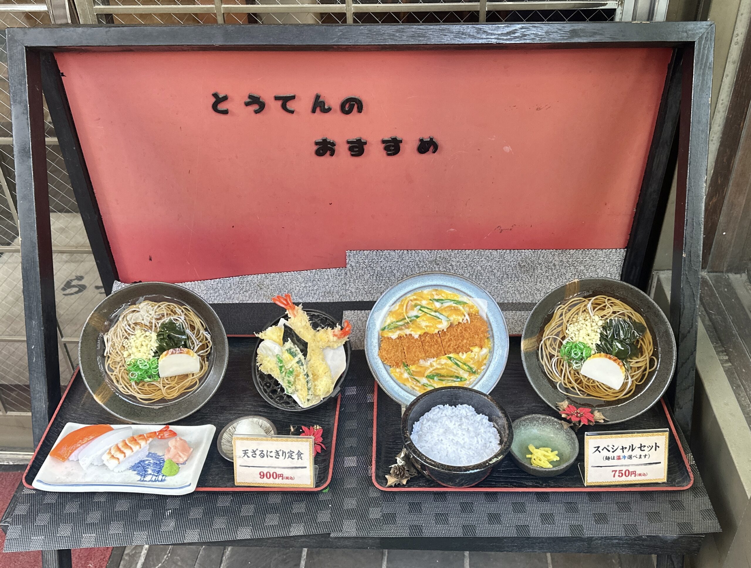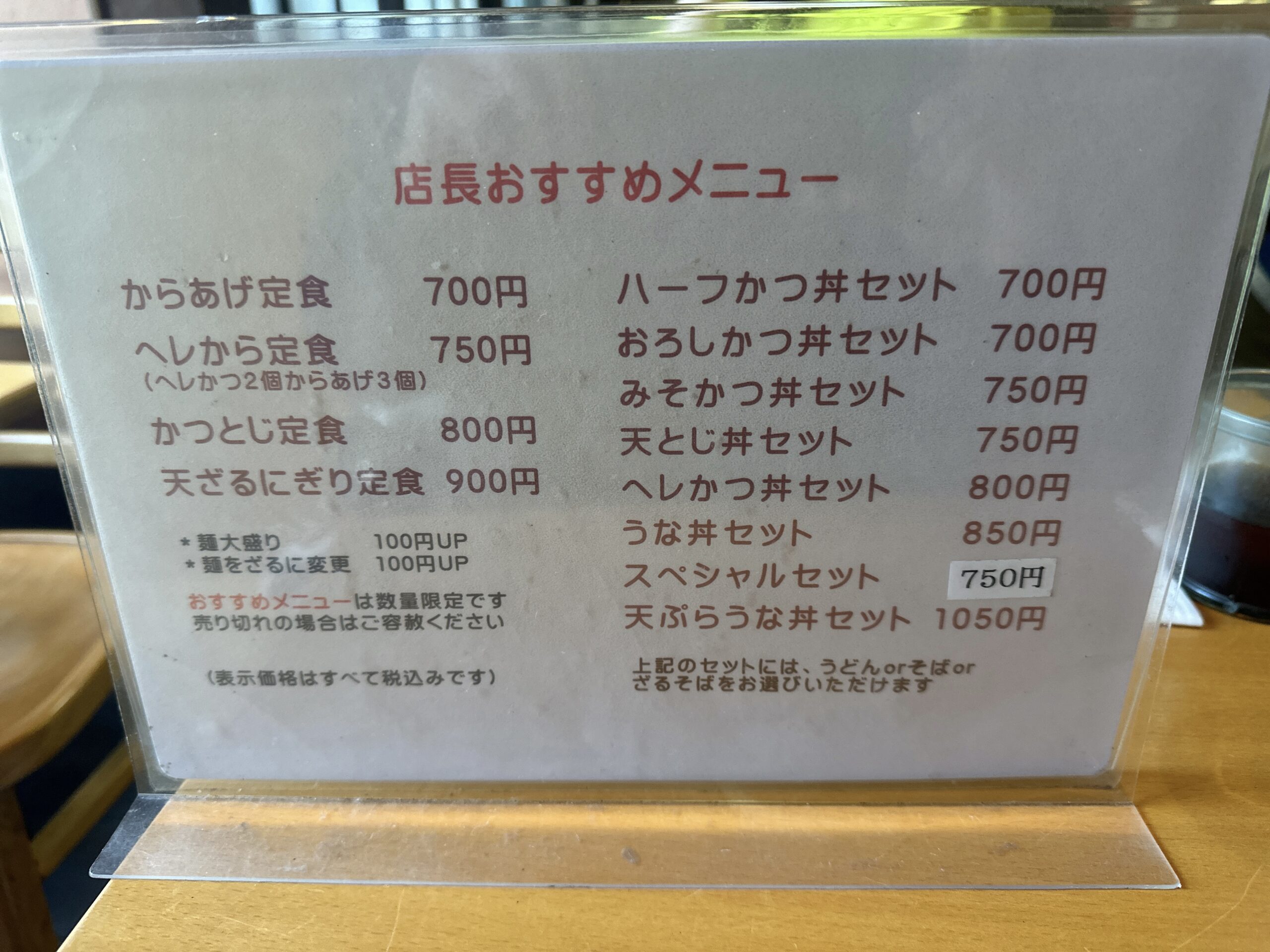 店の前におすすめメニューがあったんですが、そばとカツ丼のセットで1000円以下、他にも定食など結構豪華な物でもたいていが1000円以下なんです。