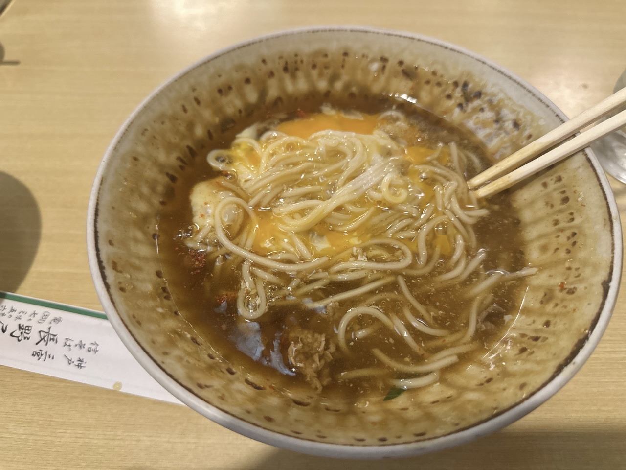 月見にしてもらった方は後半に卵をつぶして食べると、濃い目の出汁が滑らかになってこれまた絶品!