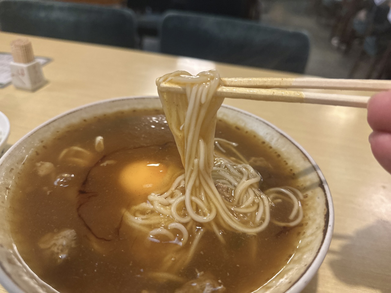 これは最高です!麺、スープ、お肉、カレー出汁、全てが最高に組み合わさった感じ。ご飯が進みます。