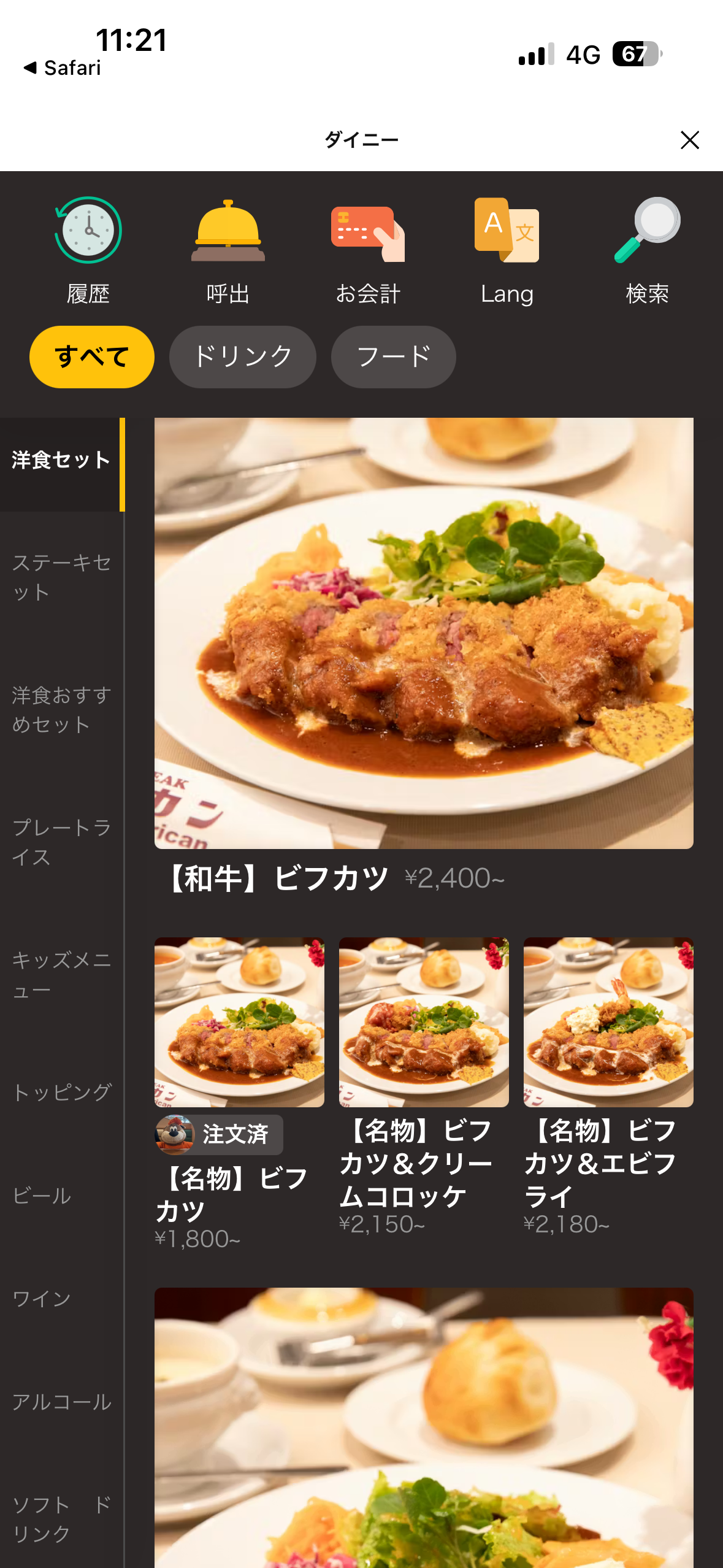 名物ビフカツ 1,800、そしてハンバーグ&カニクリームコロッケ 1,880を注文する事に決めました。(2人で来店)
