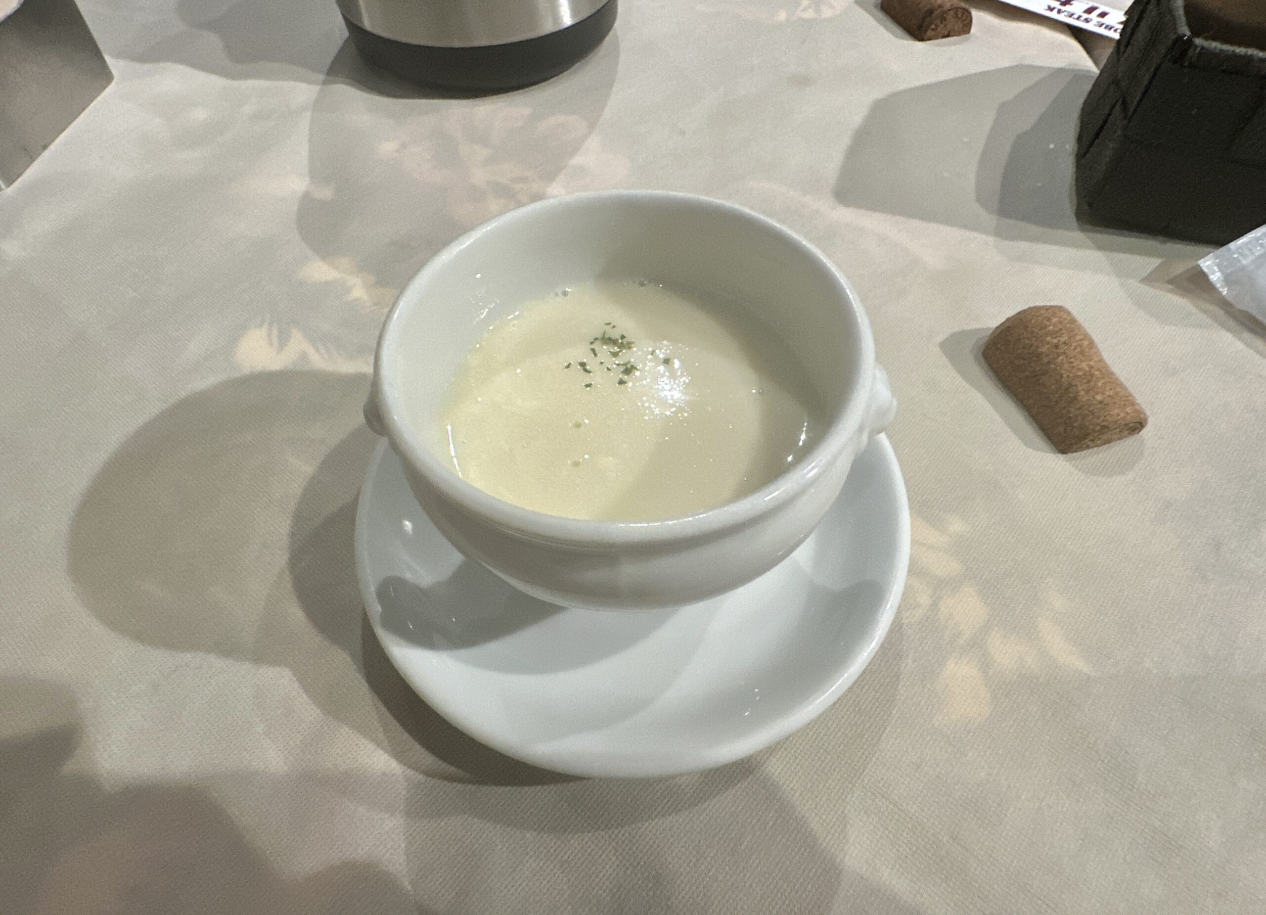 注文が完了してから5分程でまず前菜のスープが運ばれてきました。