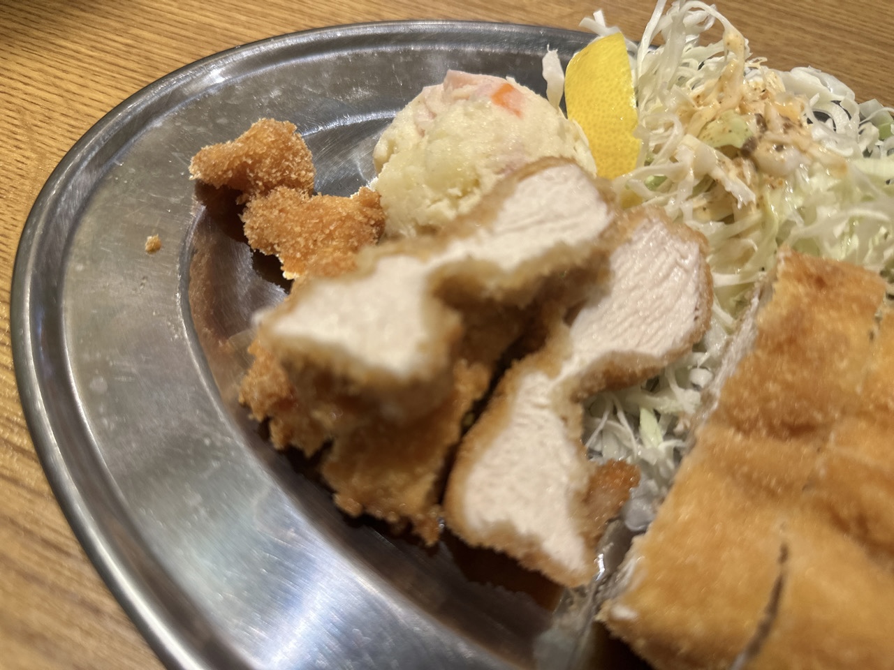 そしてチキンカツ。店員さんのおすすめどおりおろしポン酢で頂きます。