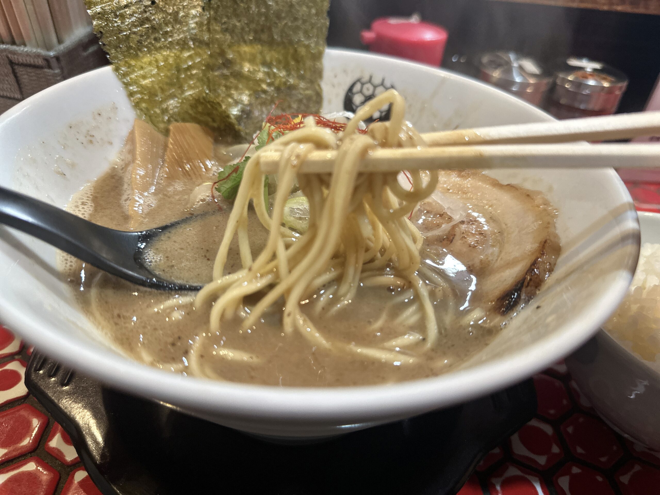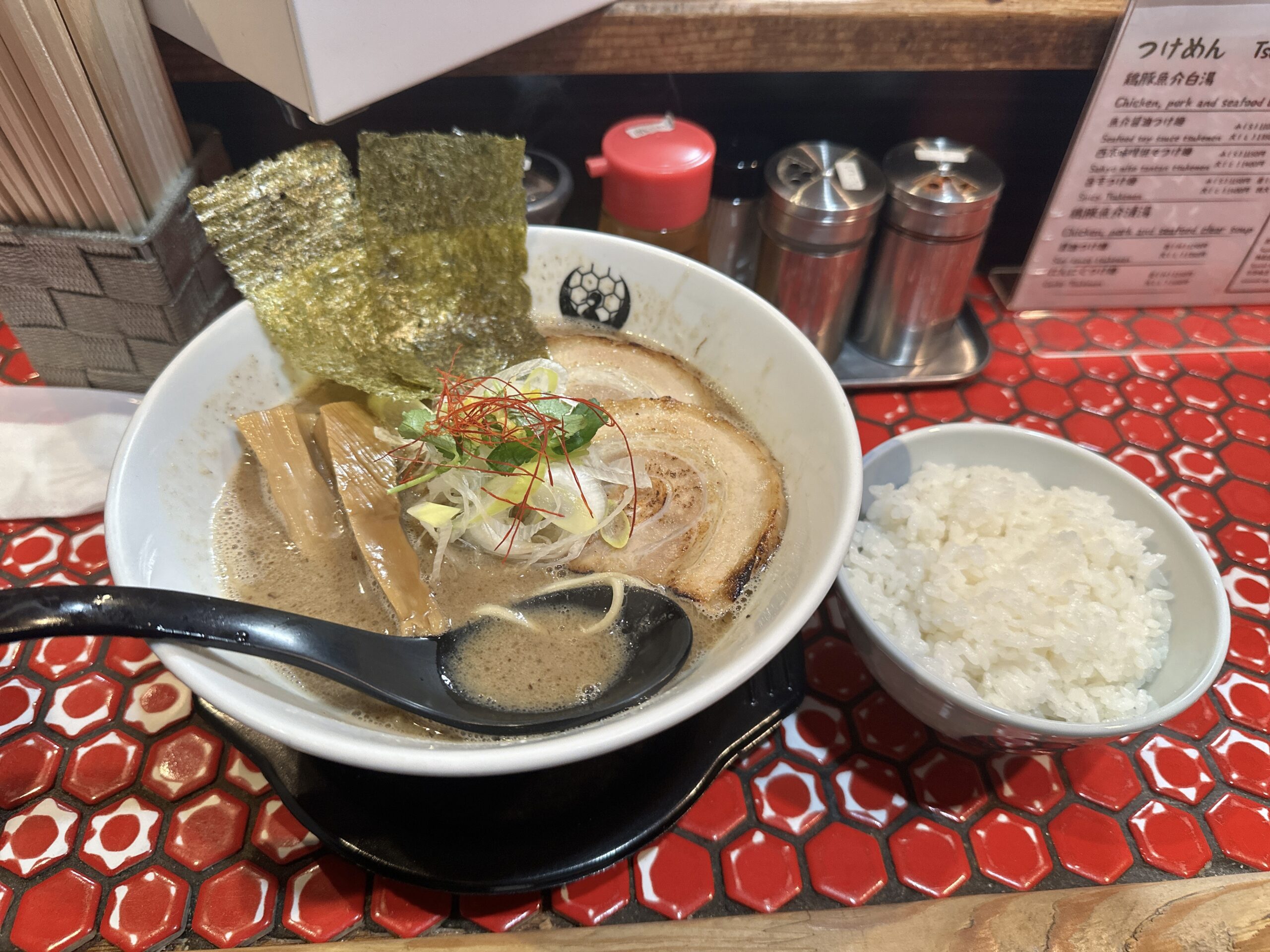 濃厚な魚介スープで麺はストレート麺。なかなか濃厚なスープでガツンとくる感じで美味しかったです。